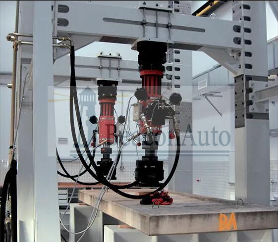 BaT2510-4 土木工程靜態(tài)力學(xué)加載試驗系統(tǒng) 土木工程靜態(tài)力學(xué)加載試驗系統(tǒng)產(chǎn)品簡介: 土木工程靜態(tài)力學(xué)加載試驗系統(tǒng),適用于主要應(yīng)用于橋梁、建筑、學(xué)校土木工程研究等力學(xué)結(jié)構(gòu)靜態(tài)性能的試驗研究。主要用途包括: 完成梁、墻、柱、框架、節(jié)點、以及樓板等結(jié)構(gòu)件的低周反復(fù)加載,保載、卸載等常規(guī)試驗。 該系列產(chǎn)品具有輸出力范圍廣,控制精度高,使用方便,可靠性高等特點。該系統(tǒng)在研制、開發(fā)過程中吸取國際先進電液伺服控制技術(shù),結(jié)合國內(nèi)用戶的實際使用狀況設(shè)計而成。伺服作動器、伺服動力液壓站、力加載框架等關(guān)鍵部件為我公司設(shè)計制造,伺服閥、傳感器、密封件等關(guān)鍵外購件均選用國際、國內(nèi)同類產(chǎn)品的著名品牌產(chǎn)品,大大提高了系統(tǒng)的穩(wěn)定性和可靠性,試驗機的整體性能與國際先進產(chǎn)品技術(shù)水平相當(dāng)。 土木工程靜態(tài)力學(xué)加載試驗系統(tǒng)既能低周疲勞試驗、程序控制疲勞試驗,也能進行靜態(tài)的恒速率、恒應(yīng)變、恒應(yīng)力控制下的試驗和各種常規(guī)的力學(xué)性能試驗,還可進行斷裂力學(xué)試驗,自然力量模擬試驗,如地震、風(fēng)浪等。根據(jù)需要也可以進行部分的工況模擬等,因此有著其它任何種類的試驗機所不能比擬的優(yōu)勢; 在土木工程方面我們有針對結(jié)構(gòu)試驗而設(shè)計的大噸位作動器,作動器形式有單出桿和雙出桿兩種結(jié)構(gòu)形式,輸出力范圍從100kN到10000kN,行程可根據(jù)用戶實際需求而定,作動器標(biāo)準(zhǔn)行程200--500mm(±100mm/±250mm),根據(jù)結(jié)構(gòu)試驗要求可配置不同規(guī)格的作動器,廣泛應(yīng)用于新型混凝土材料、復(fù)合結(jié)構(gòu)件材料的靜態(tài)力學(xué)性能試驗,包括拉伸、壓縮、三點四點彎曲試驗、;也可以進行結(jié)構(gòu)件的疲勞試驗,如長支撐梁,公路橋等。從簡單的靜態(tài)結(jié)構(gòu)試驗到原尺寸大型構(gòu)件地震模擬試驗,從單通道試驗到大型土木工程試驗室配置,從支柱彎曲到三軸橡膠橋梁軸承試驗,該系列設(shè)備均可為你提供極大的幫助,可以助你驗證新概念、開發(fā)更新、更有效、更經(jīng)濟的土木材料和結(jié)構(gòu) 土木工程靜態(tài)力學(xué)加載試驗系統(tǒng)方案描述: 土木工程靜態(tài)力學(xué)加載試驗系統(tǒng)主要組成部分有: 1.自平衡門式反力框架、1套 2.伺服作動器:3000KN/1500雙出桿作動器各1只; 3.伺服動力液壓站;大流量遠程控制伺服液壓系統(tǒng),包括分油閥塊和管路。 4.?dāng)?shù)據(jù)采集控制系統(tǒng):雙通道靜載控制器,包括擴展采集和軟件 5.各路力傳感器和位移傳感器 6. 根據(jù)需要配置各種球鉸支座 NO.1自平衡門式反力框架 土木工程靜態(tài)力學(xué)加載試驗系統(tǒng)功能及基本參數(shù): 1、為結(jié)構(gòu)試驗提供多功能綜合反力框架; 2、多功能綜合反力架采用自平衡概念設(shè)計; 3、根據(jù)不同的試驗,反力架橫梁液壓升降自由調(diào)節(jié); 4、為加載設(shè)備、結(jié)構(gòu)試件預(yù)留相應(yīng)的安裝連接; 5、主梁在可調(diào)節(jié)加載范圍內(nèi)豎向承載力設(shè)計值為4000kN; 6、反力架可以抵抗2000kN的雙向水平荷載,可抵抗偏壓柱試驗、復(fù)雜節(jié)點加載試驗時產(chǎn)生的水平反力。 7、反力架采用Q345-B結(jié)構(gòu)鋼; 8、上橫梁配有獨立的升降系統(tǒng),上橫梁升降操作便捷,安全。 反力架材料選用Q345-B鋼板,試驗空間大,且高度空間可調(diào)整,側(cè)向也需要進行施加載荷,這就要求整體框架要有足夠的剛度,底座、立柱、橫梁采用等強度廂型梁焊接結(jié)構(gòu),立柱帶有斜撐,以抵抗試件的側(cè)向加載力;立柱與底座間緊密接觸,這樣可以在試驗過程中盡量減少立柱的伸長對試驗結(jié)果的影響。整體框架構(gòu)造及其每個部件都進行有限元分析,并根據(jù)分析結(jié)果反復(fù)進行結(jié)構(gòu)的優(yōu)化設(shè)計,以達到最滿意的效果。 橫梁通過安裝在兩立柱上的螺栓調(diào)整其垂向位置,操作簡單,調(diào)整到試驗位置后,通過螺栓進行定位鎖緊,消除間隙。為了保證橫梁升降的穩(wěn)定性和安全性,對升降橫梁用加強螺栓定位。 橫梁配有獨立的升降機構(gòu),兩側(cè)固定有升降用舉升油缸,通過控制舉升油缸的升降來完成對試驗空間的無級調(diào)整。 NO.2伺服作動器 伺服直線作動器是加載系統(tǒng)的執(zhí)行部件,系統(tǒng)通過作動器對被測試件施加試驗力。伺服直線作動器由作動器本體、伺服閥塊組、球鉸關(guān)節(jié)支座、流體連接件等部分組成。作動器內(nèi)置磁致伸縮位移傳感器用于測量試驗位移,負荷傳感器安裝在作動器活塞桿前端用于測量試驗負荷,負荷傳感器采用美國世銓公司試驗機專用動態(tài)高精度負荷傳感器。伺服閥采用航宇試驗機專用電液伺服閥。 作動器結(jié)構(gòu)特點: l 系統(tǒng)采用消隙裝置,力值自動定心,減小側(cè)向力,降低拉壓試驗時的沖擊,改善試驗波形。伺服直線作動器兩端采用球鉸關(guān)節(jié)支座結(jié)構(gòu),最大限度的減少來自被試件側(cè)向力對作動器的損傷,關(guān)節(jié)支座結(jié)構(g