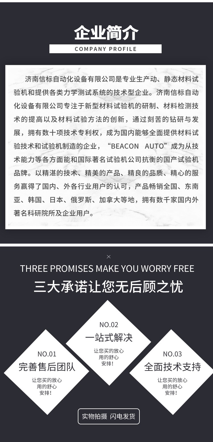 濟(jì)南信標(biāo)自動化設(shè)備有限公司主要生產(chǎn):動靜態(tài)萬能疲勞試驗(yàn)機(jī),接骨板彎曲試驗(yàn)機(jī),縫合線拉伸疲勞試驗(yàn)機(jī),髖膝關(guān)節(jié)磨損試驗(yàn)機(jī),電子萬能試驗(yàn)機(jī)、液壓萬能試驗(yàn)機(jī)、巖石三軸、四軸,電液拉力試驗(yàn)機(jī),材料試驗(yàn)機(jī),高低溫蠕變,高低頻疲勞,拉伸、扭轉(zhuǎn)、杯突等二十多個系列兩千多個的品種。