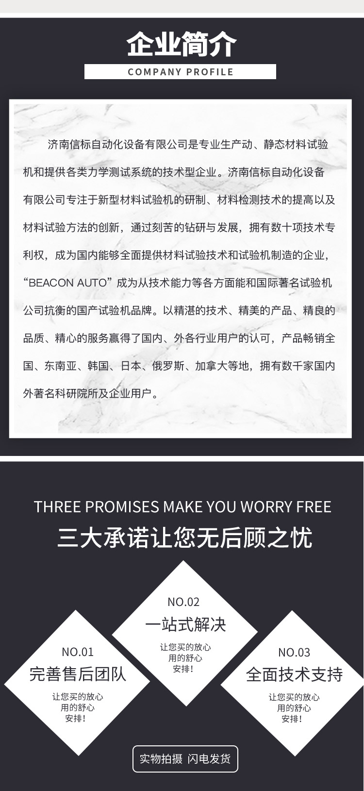 濟南信標自動化設備有限公司主要生產:動靜態萬能疲勞試驗機,接骨板彎曲試驗機,縫合線拉伸疲勞試驗機,髖膝關節磨損試驗機,電子萬能試驗機、液壓萬能試驗機、巖石三軸、四軸,電液拉力試驗機,材料試驗機,高低溫蠕變,高低頻疲勞,拉伸、扭轉、杯突等二十多個系列兩千多個的品種。
