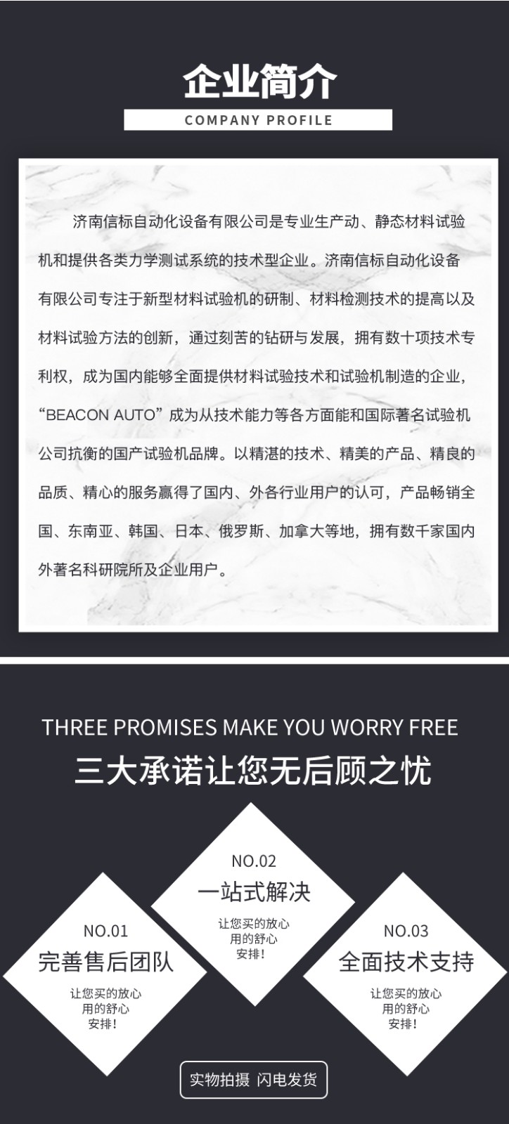 濟南信標自動化設備有限公司主要生產:動靜態萬能疲勞試驗機,接骨板彎曲試驗機,縫合線拉伸疲勞試驗機,髖膝關節磨損試驗機,電子萬能試驗機、液壓萬能試驗機、巖石三軸、四軸,電液拉力試驗機,材料試驗機,高低溫蠕變,高低頻疲勞,拉伸、扭轉、杯突等二十多個系列兩千多個的品種。